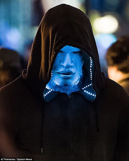 Di wajahnya tampak banyak guratan menonjol. Jamie Foxx terlihat mengenakan sebuah jaket hoodie hitam untuk menutupi wajahnya.